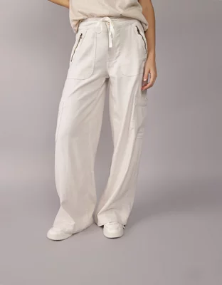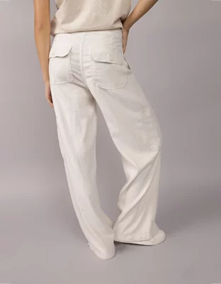 AE Dreamy Drape Linen-Blend Baggy Wide-Leg Cargo Pant