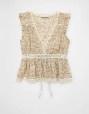 AE Lace Trim Flutter Sleeve Blouse