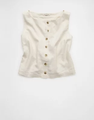 AE Linen-Blend High-Neck Vest