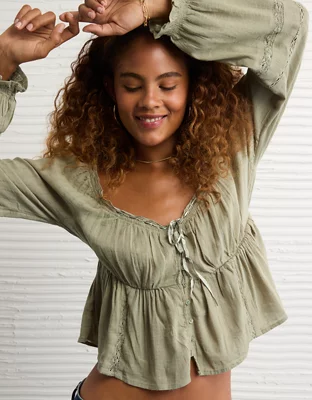 AE Long-Sleeve Babydoll Blouse