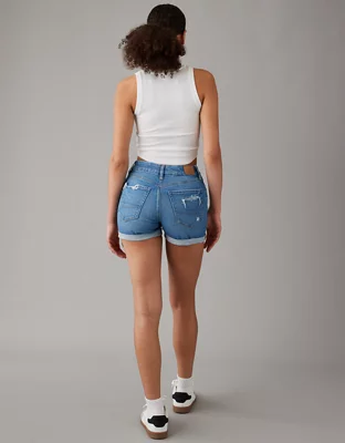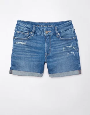 AE Next Level Curvy V-Rise Ripped Denim Midi Short