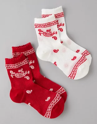 AE Bandana Ruffle Cropped Crew Socks 2-Pack
