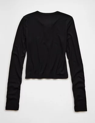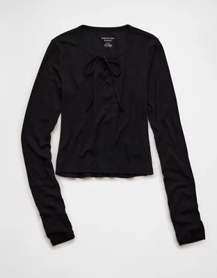 AE Cropped Long-Sleeve Lace-Up T-Shirt