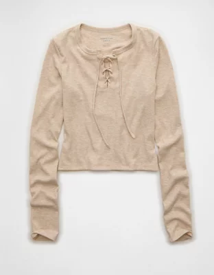 AE Cropped Long-Sleeve Lace-Up T-Shirt
