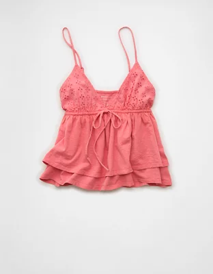 AE Sunchaser Eyelet Ruffle Babydoll Cami Top