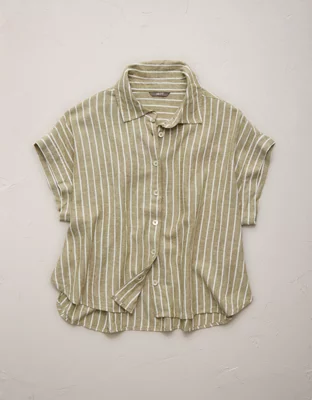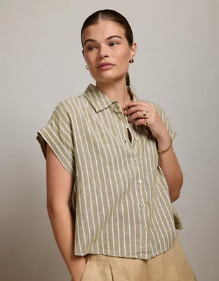 AE77 Boxy Cropped Linen-Blend Button-Up Shirt