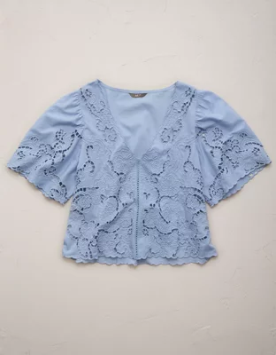 AE77 Eyelet Lace Short-Sleeve Blouse