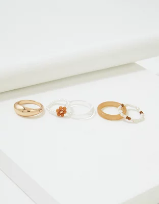 AEO Neutral Flower + Beaded Resin Ring 5-Pack