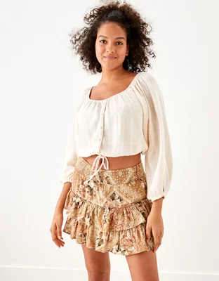 AE Floral Tiered Ruffled Mini Skirt