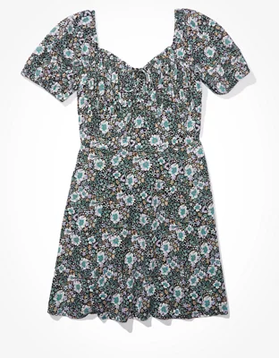 AE Floral Puff-Sleeve Ruched Mini Dress