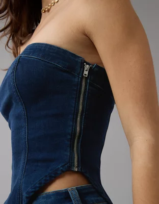 AE Asymmetrical Denim Tube Top