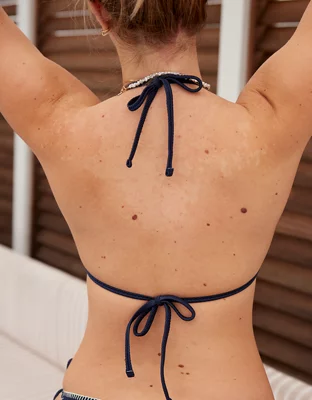 Haut de bikini triangulaire à ficelles en piqué brillant Aerie