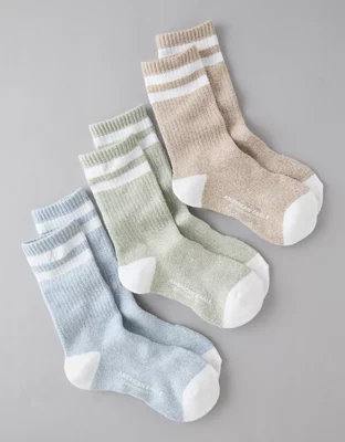 Lot de trois paires de mi-chaussettes en tissu éponge à rayures AE