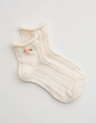 Aerie 3D Rosette Quarter Socks