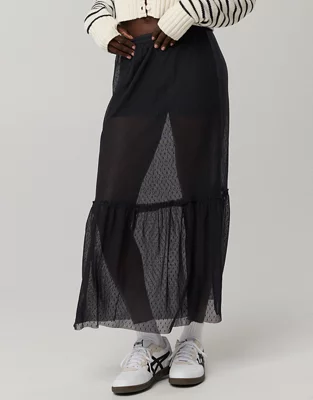 OFFLINE By Aerie Tiered Dot Mesh Maxi Skirt