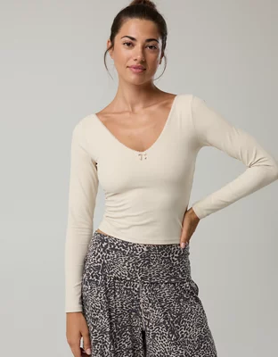 OFFLINE By Aerie Real Me XTRA Rib Open V-Neck T-Shirt