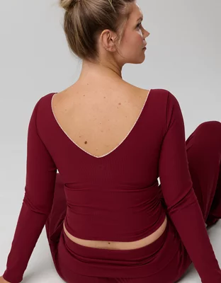 OFFLINE By Aerie Real Me XTRA Rib Open V-Neck T-Shirt