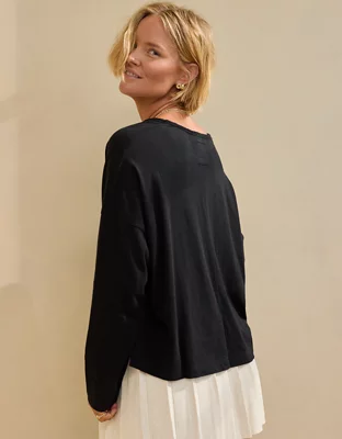 Aerie Long Sleeve Slouchy Oversized V-Neck T-Shirt