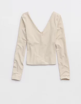 OFFLINE By Aerie Real Me XTRA Rib Open V-Neck T-Shirt