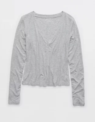Aerie Superchill® Modal Rib Long Sleeve Henley T-Shirt