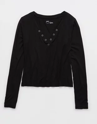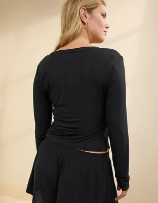 Aerie Superchill® Modal Rib Long Sleeve Henley T-Shirt
