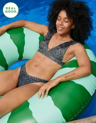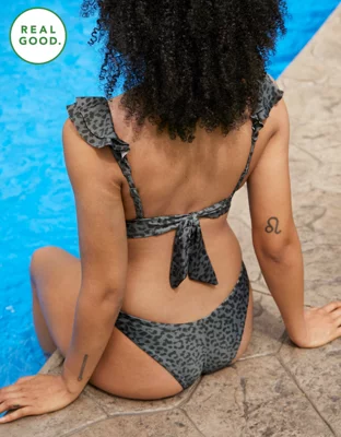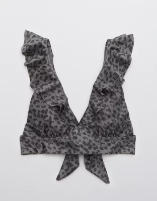 Aerie Leopard Ruffle Tie Longline Triangle Bikini Top