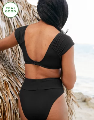 Aerie Ribbed Knot Cap Sleeve Bikini Top