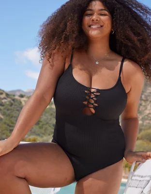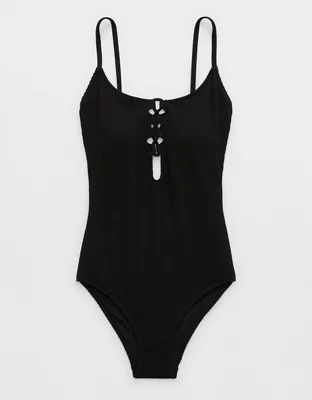 Aerie Crinkle Lace Up One Piece Swimsuit