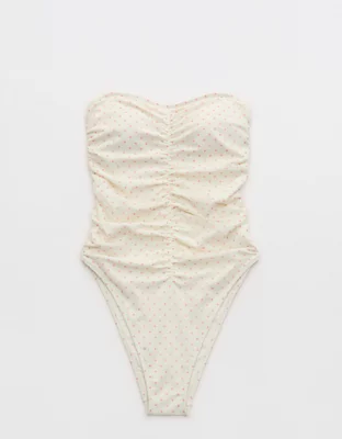 Aerie Ruched Bandeau Mesh One Piece Swimsuit