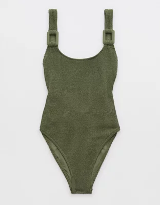 Aerie Shimmery Crinkle Birthday Scoop Cheekiest One Piece Swimsuit