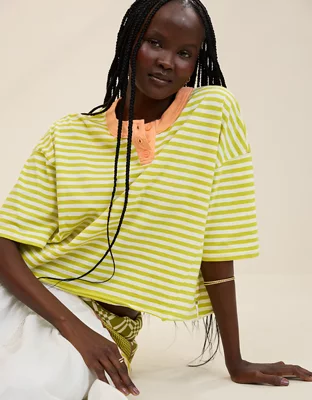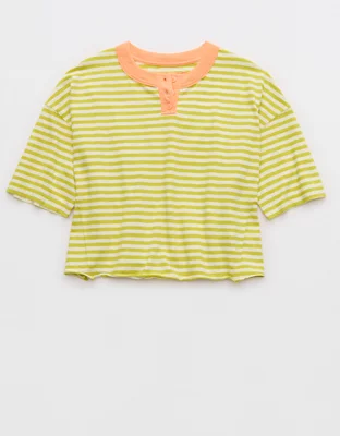 Aerie Remix Henley Cropped T-Shirt