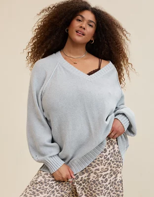 Aerie Vintage Cotton V Neck Sweater
