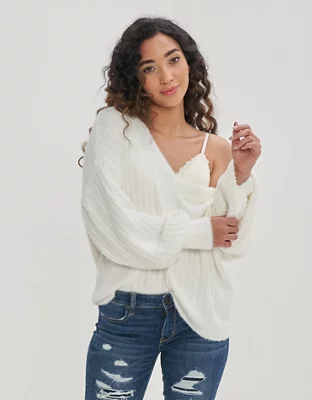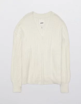 Aerie Wide Rib V-Neck Sweater
