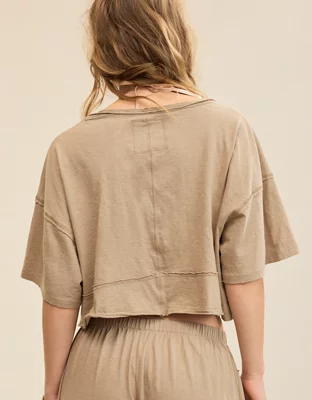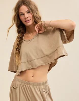 Aerie Happiest Cropped V Neck T-Shirt
