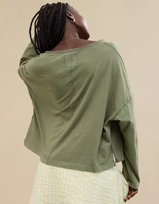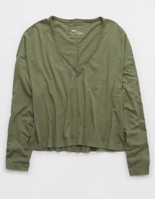 Aerie Long Sleeve Slouchy Oversized V-Neck T-Shirt