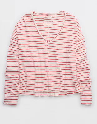 Aerie Long Sleeve Slouchy Oversized V-Neck T-Shirt