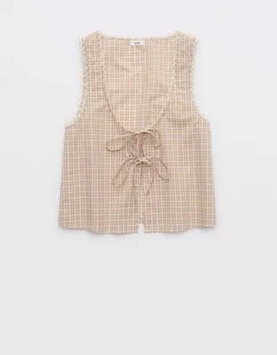 Aerie Off-Duty Poplin Tie Front Tank Top