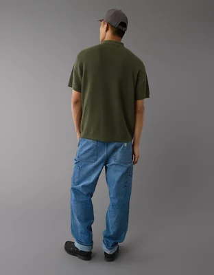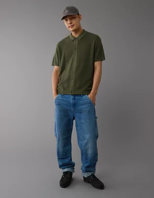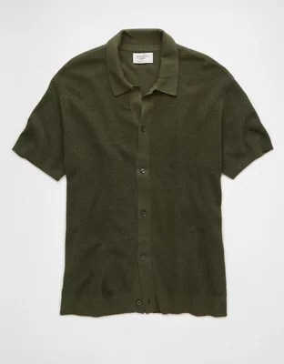 AE Weekend Waffle Button-Up Sweater Polo Shirt