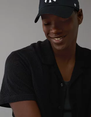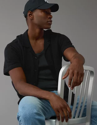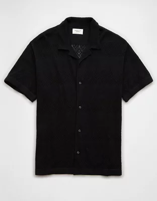 AE Weekend Diamond Crochet Button-Up Sweater Polo Shirt