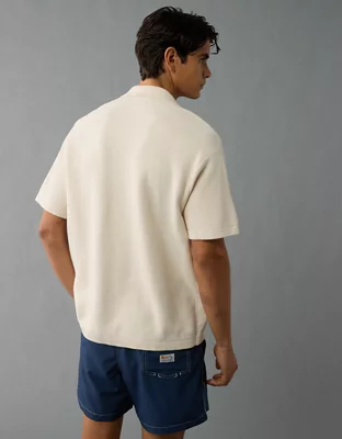 AE Weekend Striped Button-Up Sweater Polo Shirt