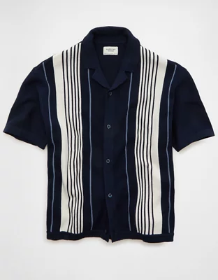 AE Striped Button-Up Sweater Polo