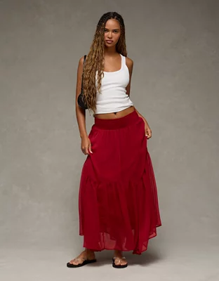 AE Smocked Handkerchief Hem Maxi Skirt