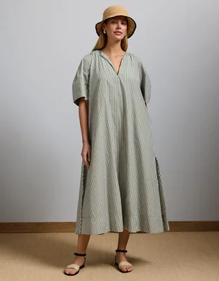 AE77 Premium Striped Poplin Maxi Dress