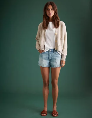 AE77 Premium Cropped Linen-Blend Sweater Cardigan