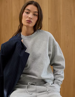 AE77 Premium Fleece Cropped Crew Neck Sweatshirt