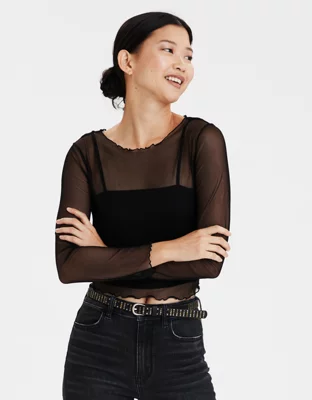AE Printed Mesh Long Sleeve Top