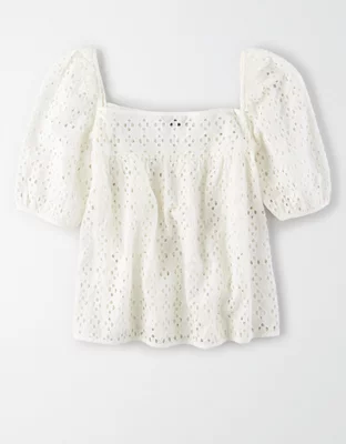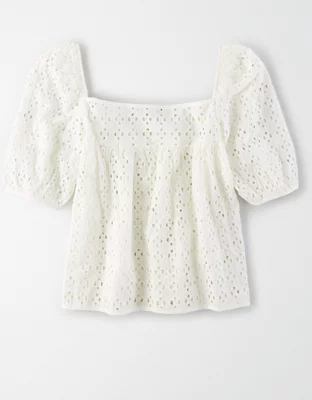 AE Studio Puff Sleeve Eyelet Top
