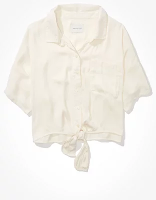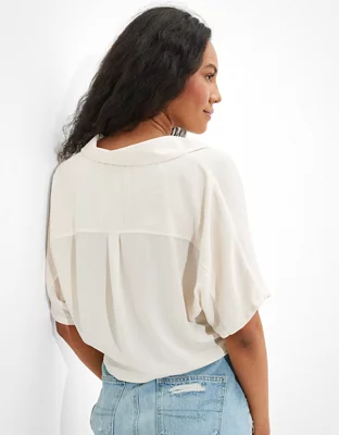 AE Silky Short-Sleeve Button-Up Shirt