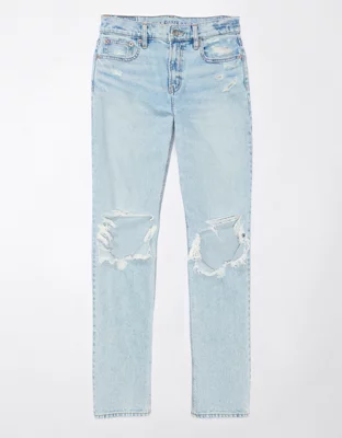 AE Stretch Super High-Waisted Ripped Ankle Straight Jean