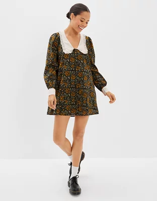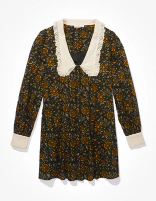 AE Floral Ruffle Collar Shirt Dress